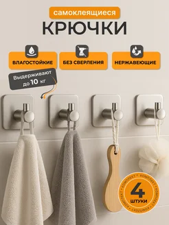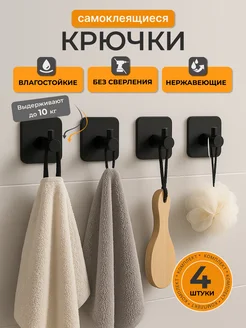 Крючки самоклеящиеся для ванной полотенец 4 шт