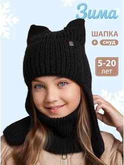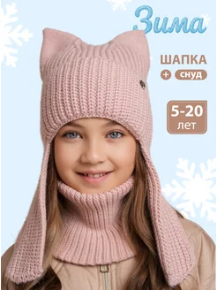 Шапка детская ушанка со снудом зима от 0° до -30°