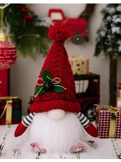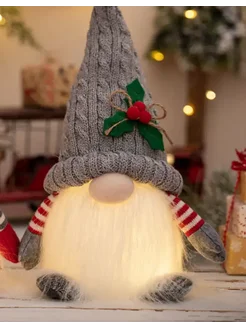 Новогодний светящийся гном под ёлку на батарейках