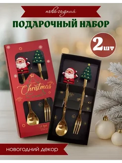 Новогодний набор золотых столовых приборов ложек и вилок