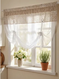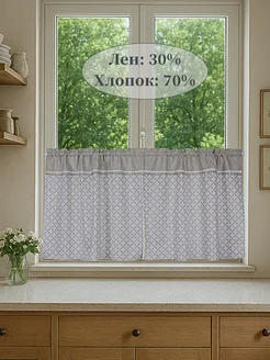 Шторки короткие для кухни. Лен, хлопок
