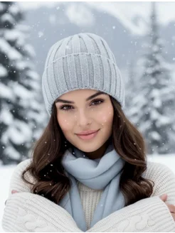 Шапка вязаная зимняя бини с отворотом