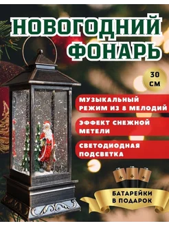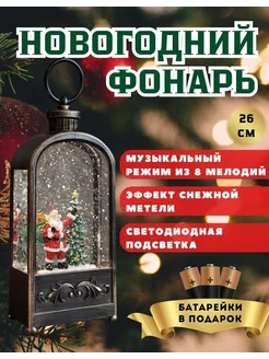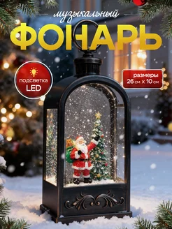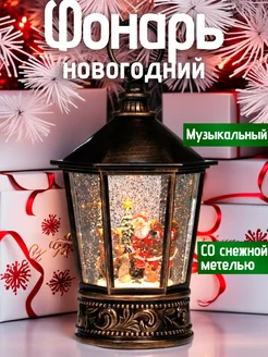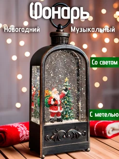 Фонарь новогодний со снегом музыкальный c Дед Морозом