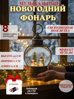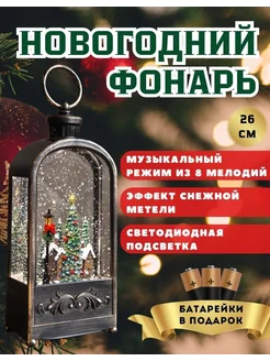 Новогодний фонарь с подсветкой, снегом и музыкой