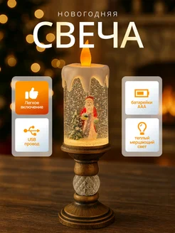 Декоративный светильник новогодняя свеча с Дед Морозом