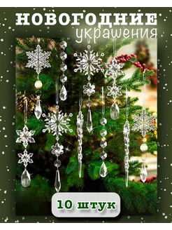 Елочные игрушки прозрачные сосульки снежинки ключики набор