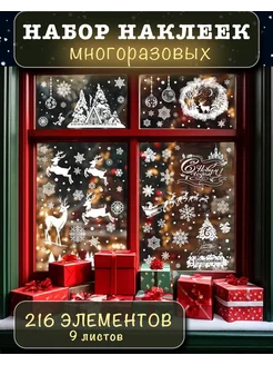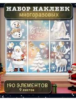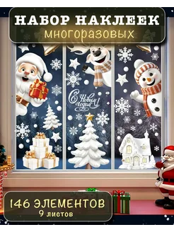 Новогодние украшения наклейки снежинки на окна многоразовые