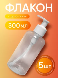 Флакон с дозатором для ванной 300 мл. 5 штук