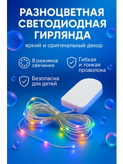 Разноцветная светодиодная гирлянда с микролампами 5м