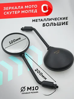 Зеркала на мотоцикл большие М10мм, круглые МЕТАЛЛ