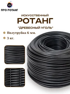 Ротанг для плетения, полутрубка 6 мм 3 кг, "Древесный уголь"