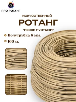 Ротанг для плетения, полутрубка 6 мм, 100 м "Песок пустыни"