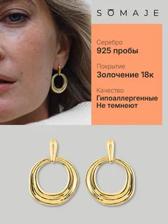 Серьги серебро 925 гвоздики женские позолоченные