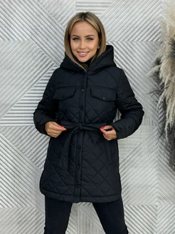 Куртка зимняя женская оверсайз длинная с капюшоном