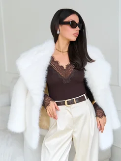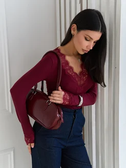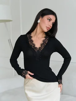 Лонгслив с кружевом с вырезом вечерний