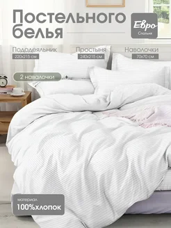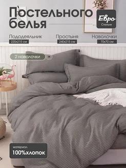 Комплект постельного бельё серый Страйп сатин Евро спальня