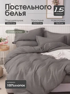 Комплект постельного бельё серый Страйп сатин 1,5 спальня