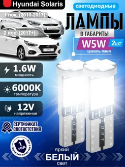 Габаритные LED лампы W5W (T10) на Хендай Солярис