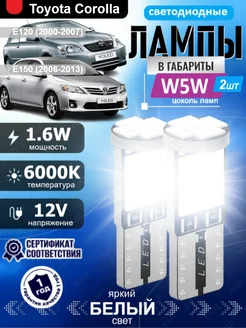 Габаритные LED лампы W5W (T10) на Toyota Corolla E120, E150