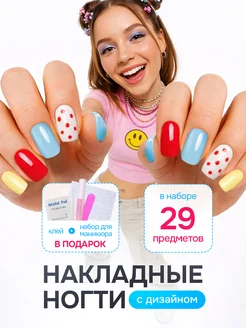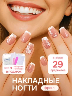 Накладные ногти квадрат средние с дизайном и клеем набор