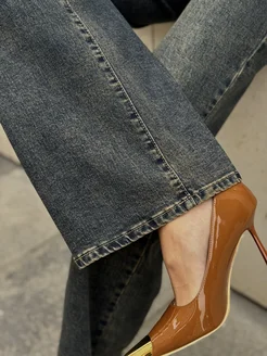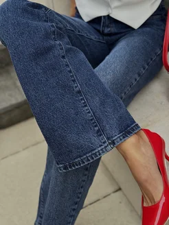 Прямые джинсы стрейч с высокой посадкой плотные классика