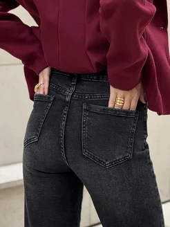 Широкие джинсы с высокой посадкой. Премиум деним со стрейчем