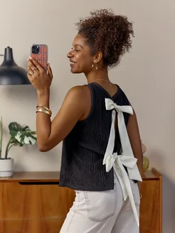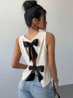 Топ вечерний нарядный однотонный без рукавов с бантиками