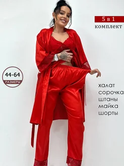 Пижама шелковая со штанами атласная домашняя