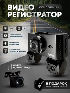 Видеорегистратор для автомобиля с двумя камерами с WiFi, 4К
