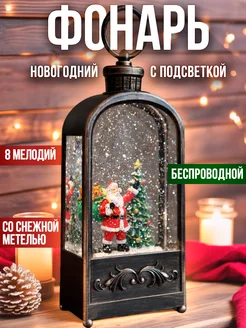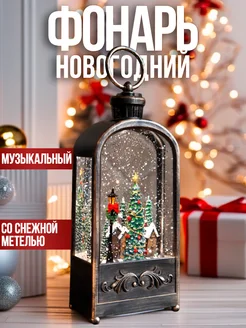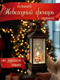 Большой Новогодний фонарь со снегом, подсветкой и музыкой