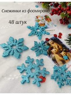 Снежинки из глиттерного фоамирана 48 штук, голубые