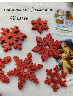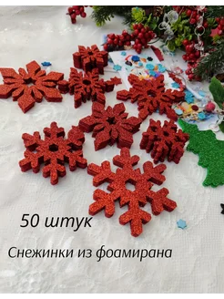 Снежинки из глиттерного фоамирана 48 штук, красные