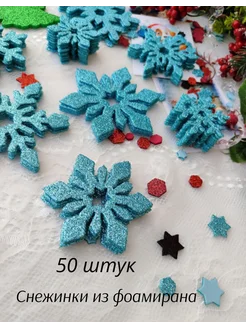 Снежинки и ёлочки из глиттерного фоамирана, 50 штук