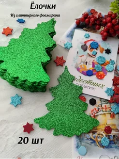 Новогодние ёлочки из глиттерного фоамирана, 20 шт