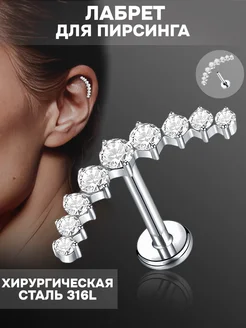 Пирсинг лабрет в ухо губу нос хеликс трагус штанга гвоздик