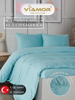 Постельное белье 1,5 на резинке страйп-сатин