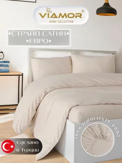 Постельное белье евро на резинке страйп-сатин