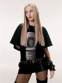 Футболка оверсайз с принтом телефон и вышивкой на спине