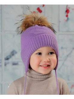 Шапка детская на завязках зимняя с помпоном