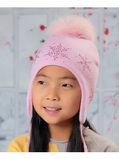 Шапка зимняя на завязках детская с помпоном