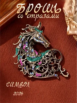 Брошь Лошадь со стразами женская бижутерия винтаж