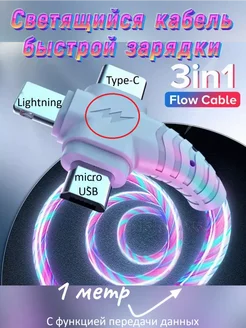 Кабель быстрой зарядки 3 в 1 светящийся разноцветный RGB