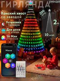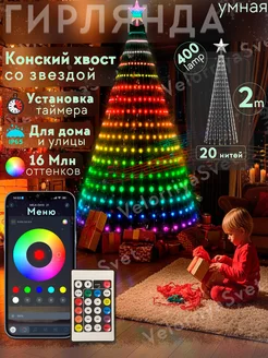 Умная гирлянда на елку Конский Хвост со звездой 2 метра