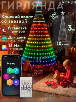 Умная гирлянда на елку Конский Хвост со звездой 3 метра