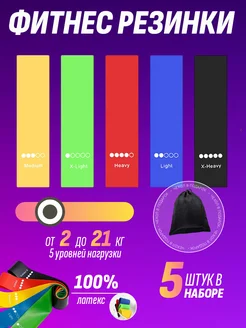 Резинки для фитнеса ленточный эспандер жгут набор 5шт