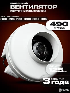 Вентилятор канальный ВКК-125 вытяжной приточный 490 м3 ч