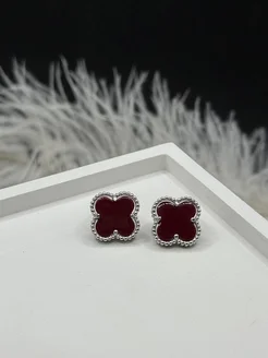 Серьги Клевер Бардовый