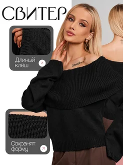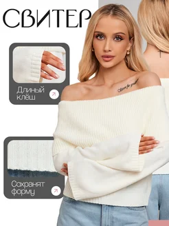 Свитеры женский кофта лонгслив вязаный со спущенными плечами