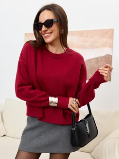 Свитеры женский теплая кофта бордовый вязаный оверсайз наряд