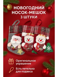 Новогодний носок-мешок для подарков набор 3 штуки